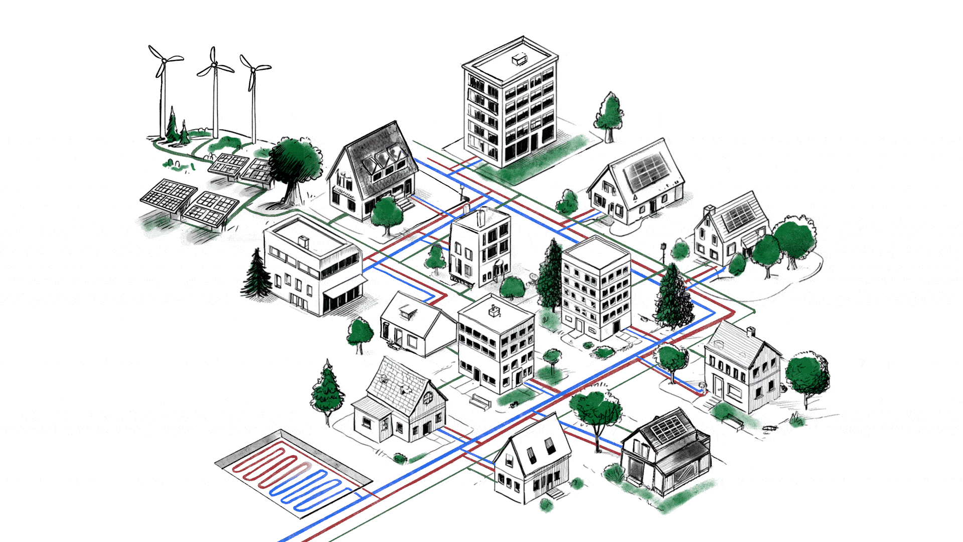 Thermonets provide a collaborative approach to green heating and cooling. Instead of everyone having their own energy source, connecting to a thermonet open up a new way of collaborating.